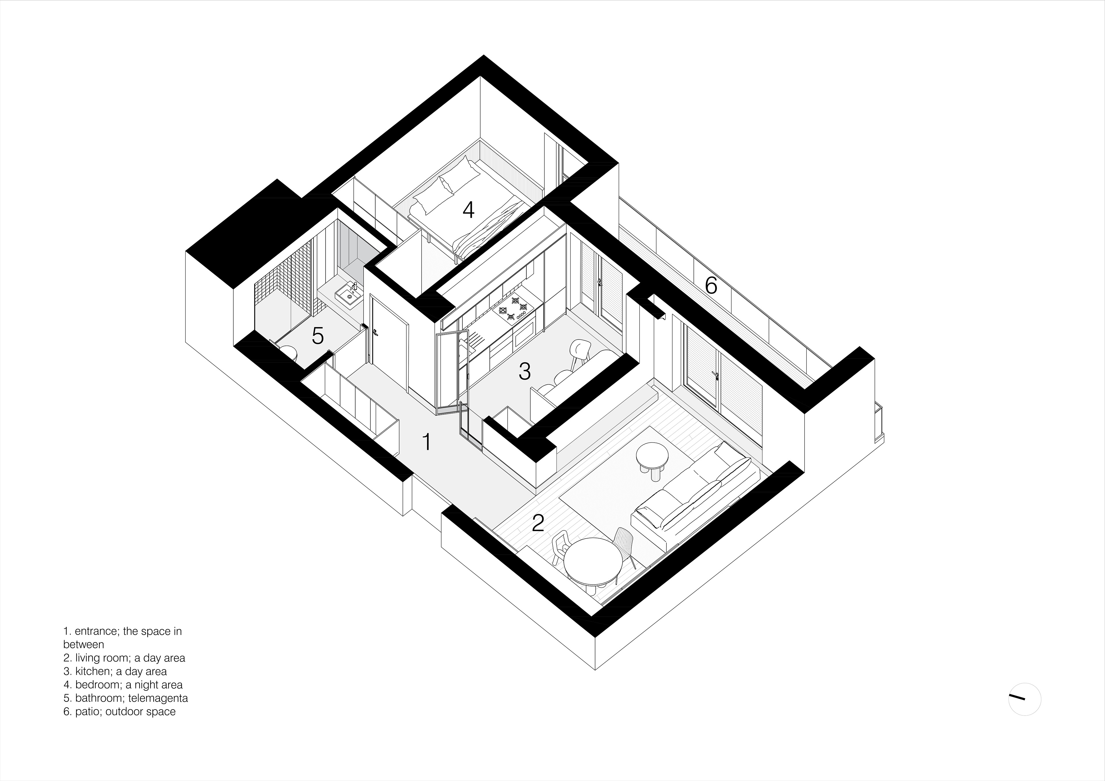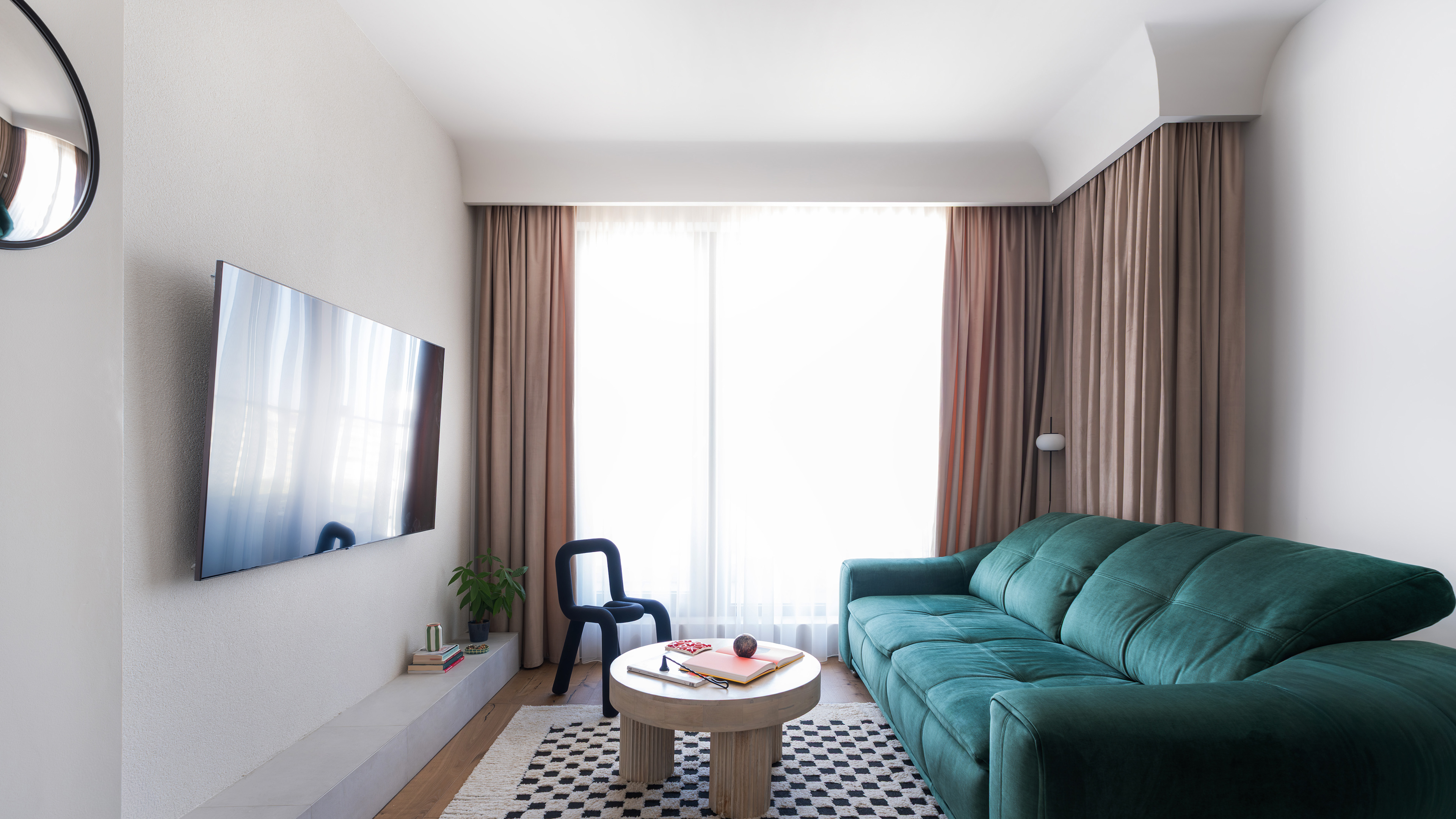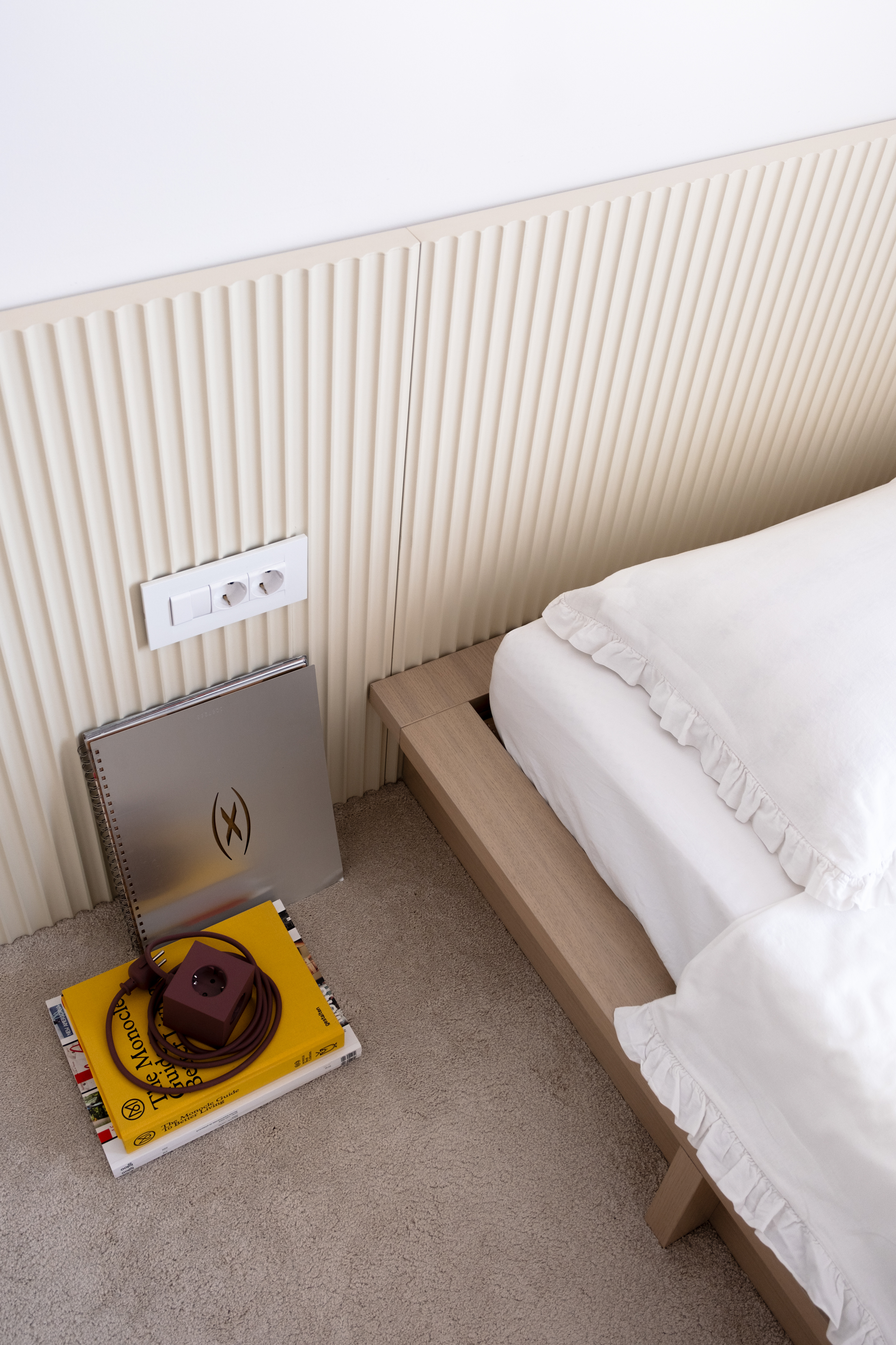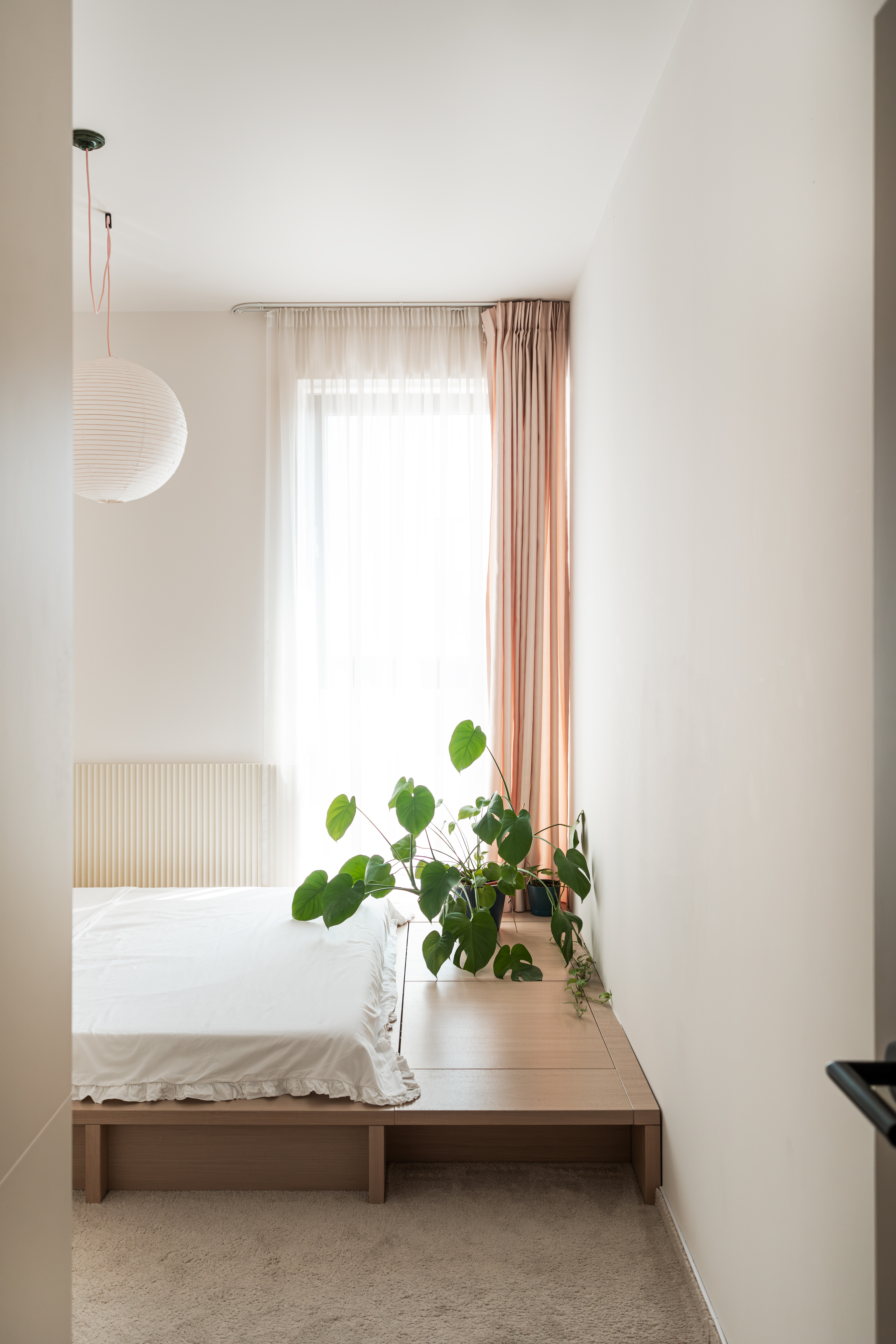 Located on the top floor of a relatively new urban residential in Bucharest, the project proposes a simple, conventional layout, tailored to a two-room dwelling.From the outset, the design unfolded from a simple gesture – a step – tracing the subtle difference in level between inside and out. Starting from this “step”, each intervention reveals as its extension, bringing it forward subtly, not as a contrasting element but as an intention quietly taking form, adapting itself to each room and its functional role.